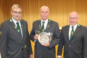 Martin Gottfried bekam bei der Jahreshauptversammlung den Ehrenteller der SG Coburg in Anerkennung für seinen unermüdlichen Einsatz für unsere Jungschützen. Sein Engagement ist bereits legendär, sei es bei der Organisation des Trainings oder Freizeitaktivitäten wie die besuche der Kartbahn, dem jährlichen Zeltlager oder des Sommerbiatlons. „Unsere Jugend ist unsere Zukunft und es ist mir persönlich eine Freude und Ehre diese aktiv zu begleiten sowie zu begleiten“, freut sich Gottfried über diese hohe Auszeichnung, die jährlich nur einmal vergeben wird. Die Ehrenteller übergaben Oberschützenmeister Stefan Stahl (links) und 1. Schützenmeister Detlef Beil.