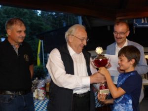 Der Altstadtrat, Schützenbruder Manfred Jenke stiftete für diesen Wettstreit vor über 30 Jahren den begehrten Preis. In diesem Jahr gab es eine Überraschung. Der Jungschütze Nino Worowsky, gerade mal 12 Lenze jung, gewann souverän den Wanderpokal als jüngster Titelgewinner der Geschichte. „Im ersten Moment war ich geschockt, da ich es nicht glauben konnte. Als mir jedoch Schützenbruder Jenke den Pokal feierlich überreichte, war es ein megageiler Moment, da ich bisher noch nie einen gewonnen habe“ – freu