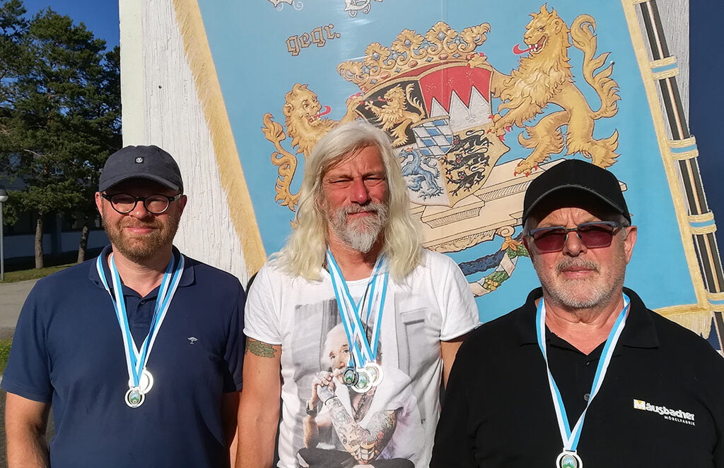 In der Disziplin „Sportpistole .30-.38“ war nach jeweils 30 Schuss Präzision und Schnellfeuer der Coburger Mannschaft mit den Schützen Dieter Hammerbacher (links (Bild 2024 jpg), Helmut Stubenrauch (fehlend, auf Vorderlader-Länderkampf in Norddeutschland) und Arpad von Schalscha-Ehrenfeld mit 1661 Gesamtringen die Tagesbestmarke gesetzt. Arpad v.Schalscha gewann mit 541 Ringen nach eine blitzsauberen Präzisionsteil und einer durchwachsenen Schnellfeuereinlage mit 11 Ringen Vorsprung zu Platz 2 den bayerischen Einzeltitel seiner Altersklasse.